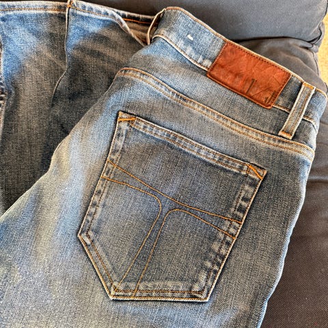 Blå chinos str 32 selges da jeg ikke bruker den. For referanse er jeg 182 cm høy