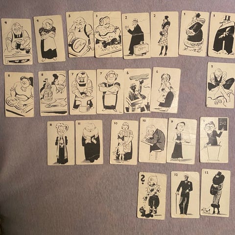 Det er 12 kort med 6 bilder på hver.