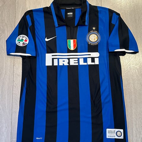 Selger en rå Inter Milan drakt med nr 6, Zanetti, på ryggen! Fra 2005/06 sesongen. Med Serie A patch. Original drakt og nummer. Noe falmet på toppen av skuldre.