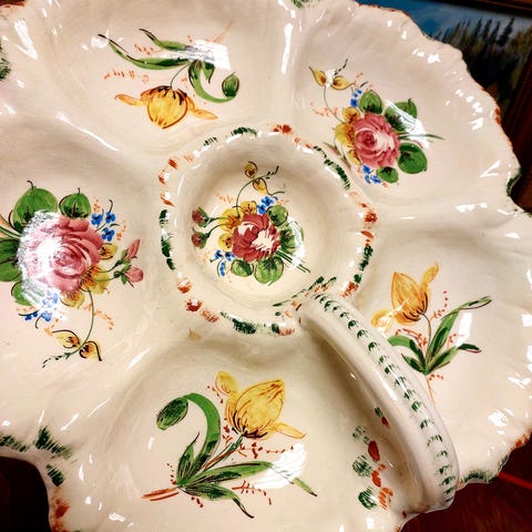 Servise, håndlaget, vintage, retro, gammelt, romantisk, cottage core, unik, spesiell, kjøkkenutstyr