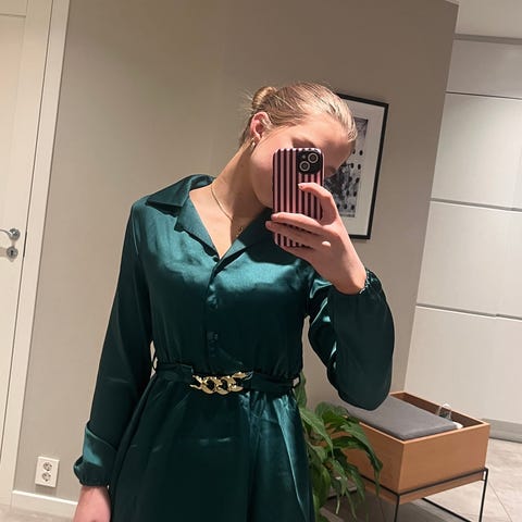 Short dress it works both on M and L people it’s very comfy and can be styled with a belt around as shown in the photo