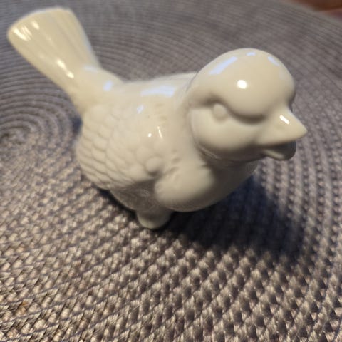 Liten porselens figur av fugl. Selges.