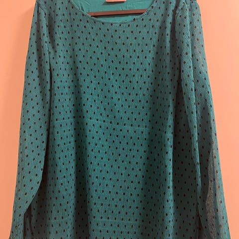 Grønn bluse med 3/4 ermer, v-hals og knapper.