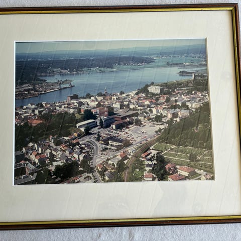 Motivet er montert i en rektangulær, gullfarget ramme med glass. Baksiden har opphengsfeste og trykt beskrivelse av motivet. Egner seg som veggbilde i for eksempel stue, gang eller kontor, særlig for dem som er interessert i lokalhistorie fra Tønsberg.