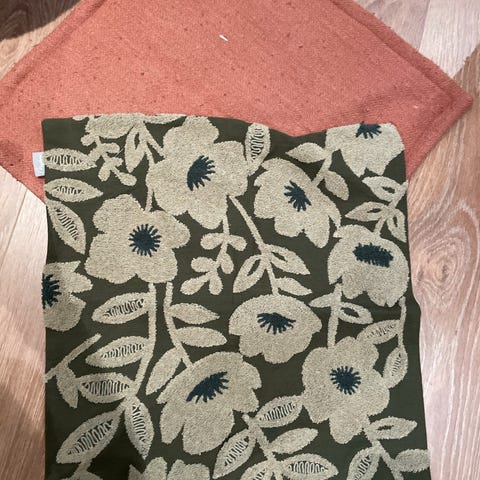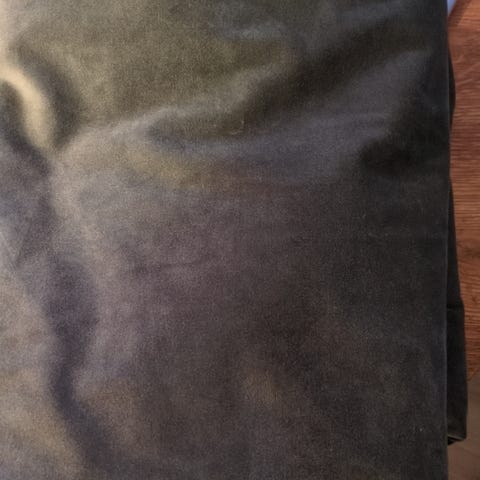 To grå velour puter fra Home & cottage selges med dunpute i - 100 kroner per stykk!