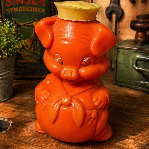 Vintage svensk sparbøsse fra Sparbanken, laget av Arta-Plast i Stockholm.