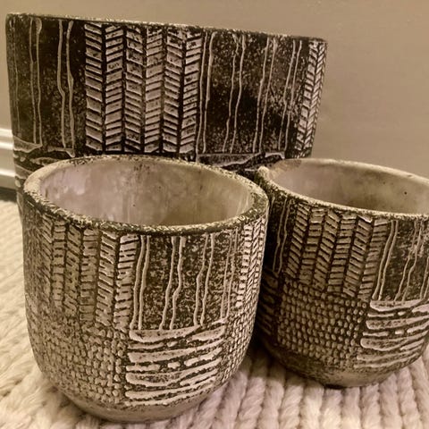 Pent brukte blomsterpotter selges samlet 95 eller 50 kr stk.