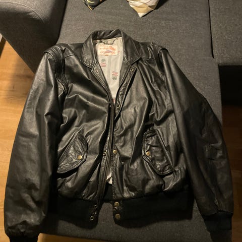 Vintage 25 år gammel MC jakke, mangler 1 stk hempe på glidelås på lomme, ellers helt helt ok. Str 60, for grovbygde karer. Fet tidløs jakke.