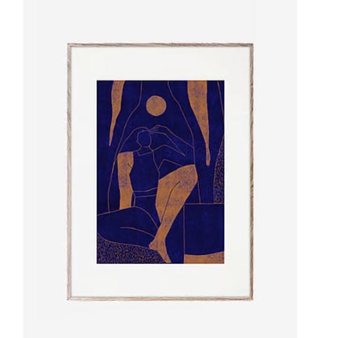 Maleriet er originalt, signert og kjøpt hos Sofia Lind som holder til i Sverige. Ramme og glass ble valgt etter anbefaling kunstner selv. Kunstglass og hvit enkel ramme som gir fokus til bilde, men spiller også med stripene som går igjen i bilde.