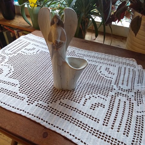 En engel på pinne som kan settes i blomster selges. Pent brukt.