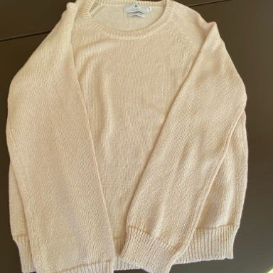 Vic fra Arnie Says. Myk strikkevest i str xs selges da den kun har blitt brukt noen få ganger. Vesten er strikket i half cardigan stitch med løs passform, V-hals og lave skuldre. Laget av en lett og pustende mohairblanding.