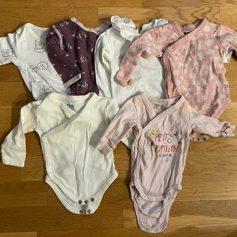3 bodyer (to langermede omslagsbodyer og en kortermet body)