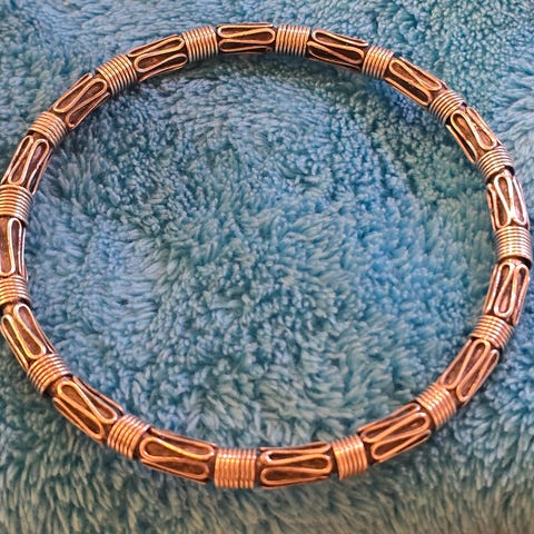 Armbåndet er laget ved bruk av tradisjonelle teknikker som har blitt overført gjennom generasjoner.