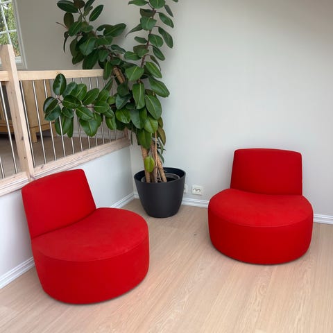 To Remsta lenestoler fra IKEA i svart velur. Tror fargen ikke lenger selges på IKEA.