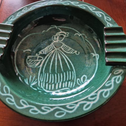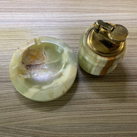 Retro askebeger med grønn farge. God stand , med brugsslitasje.