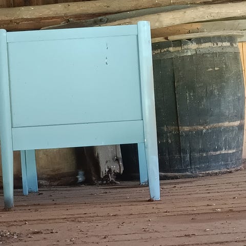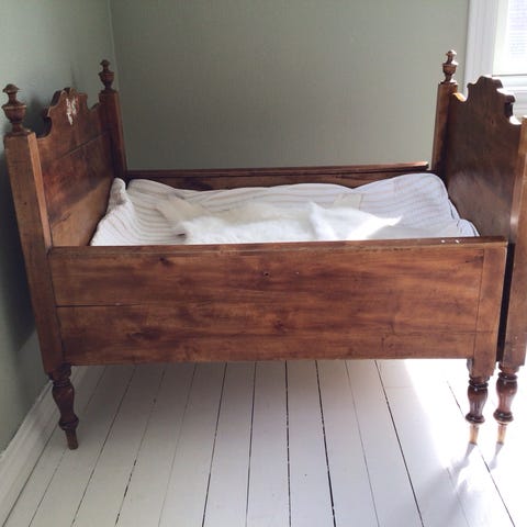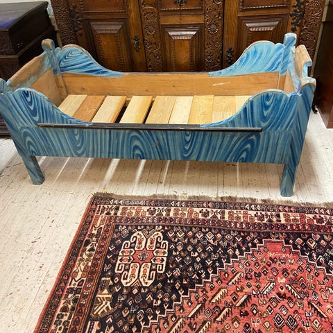 Sjarmerende, gammel barneseng. Fleksibel seng, som kan vokse med barnet.