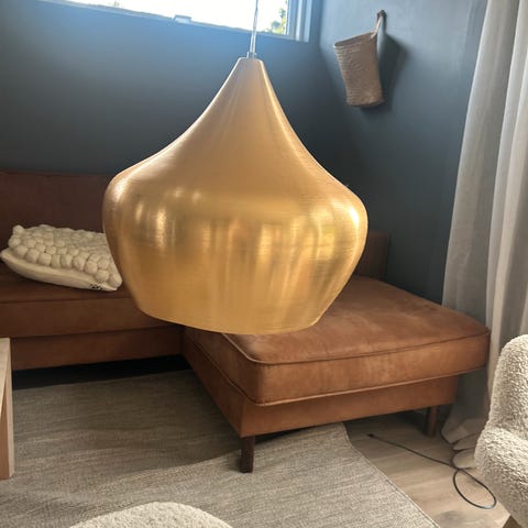 Lampen gir godt lys i rommet. Lampen fremstår som hel og fin.