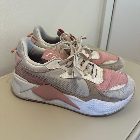 Selger mine nydelige Puma sko, da de ikke passer så godt til foten min. Har kun brukt de noen få ganger. Høyre hæl har et lite hull, men det kan raskt repareres. Grunnen til hullet er fordi den har en litt hard kant der. Jeg har brukt en pute som teipes på, men tok den av for salg. Utrolig gode sko med god demping. Kjøpt for 1300;