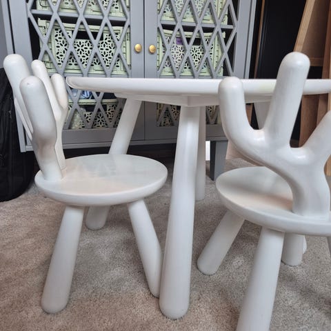 Bordplaten trenger en liten puss og oljes på nytt. Selges derfor billig.