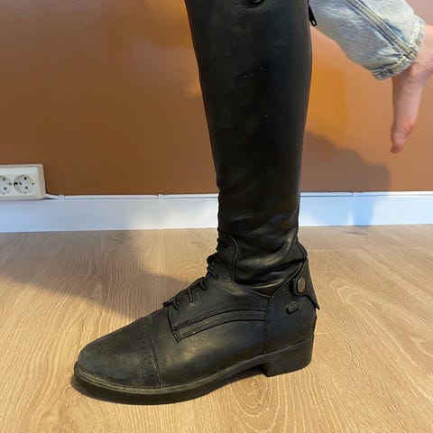 Glidelås bak, snøring i front. Innersåle mangler.,