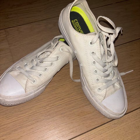 Ubrukte hvite new balance sko.