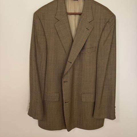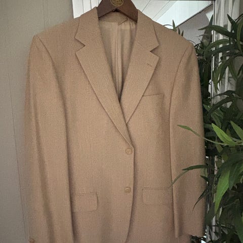 Pent brukt dressjakke selges billig. Bildene som er tatt ute viser rett farge. Kan hentes i Lier eller sendes. Hvis det er ok å rulle den slik at den får plass i en skoeske, så kan den sendes med liten pakke. Ull/polyester.