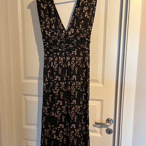 Nydelig kjole i organisk bomull. Fin, dus grønnfarge med svarte detaljer, brukt få ganger.