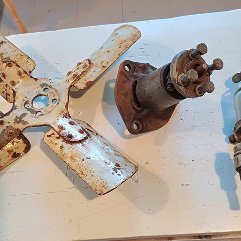Diverse reservedeler til gråtass , bensin . God vannpumpe- forgasser(Solgt) - termostat hus, klareglass osv.