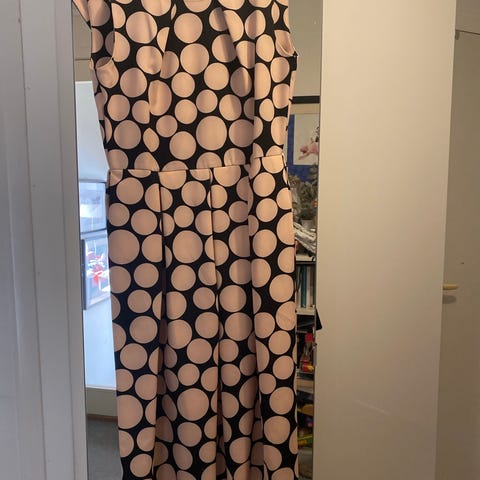 Helt ny kjole, sort og hvit med strikk i livet og 2 lommer str L selges for 200 kr