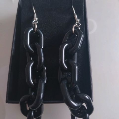 Kjempetøffe sikkerhetsnål øredobber med hodeskaller, som ny, kan sendes. De er ca. 6,5 cm lange med krok, og 2 cm brede. 129,- + frakt.