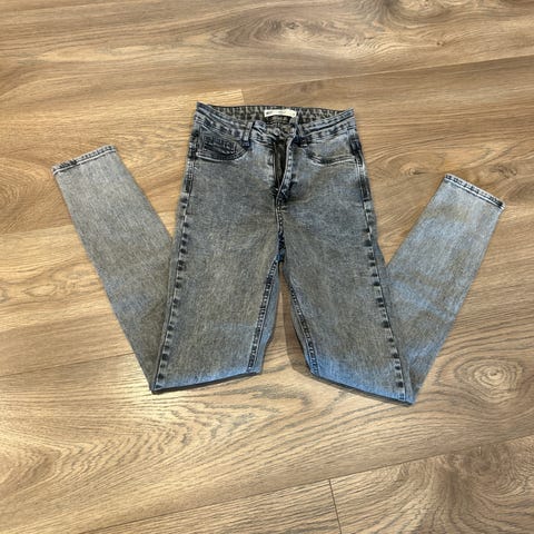 Superstretch jeans med høy midje. Jeansene er svarte og har slim-fit. De har en komfortabel passform, gylf med glidelås, rette buksebein med full lengde, splitt i enden av benet og lommer foran og baktil. Se gjerne vår størrelsesguide for å finne størrelsen din.