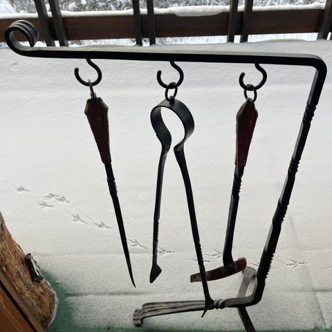 Sort peisovn, og kobberplate på gulvet foran peisovn, på bildet er solgt.