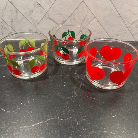 Søt skål med kirsebærmotiv. Dessertskål men kan fin benyttes til f.eks telys.