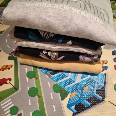 Fire stilige hettegenser er i str. 146/152.