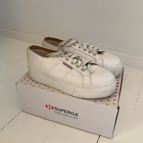 Klassiske og flotte platåsko i hvit mykt skinn fra Superga