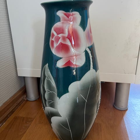 Fatet er ca. 26,5 cm x 26,5 cm og er i flott vintage stand uten skår eller sprekker.