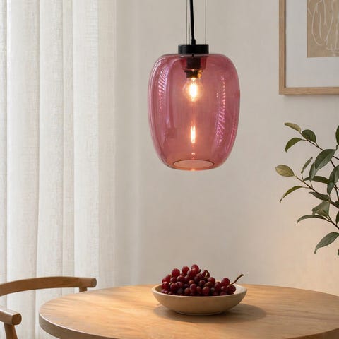 Kosmos glasslampe i rosa og blått designet av Torbjørn Torgersen for Randsfjord glassverk, samme produsent som laget den populære sopplampen.