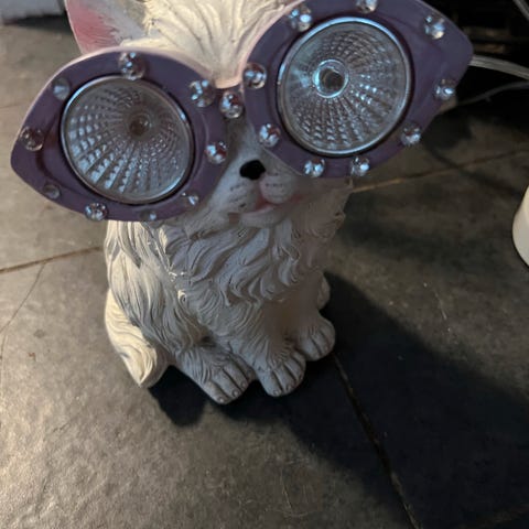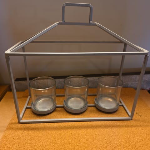 Lysestake og katt i tre selges samlet 150kr.