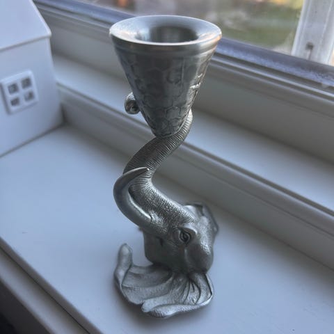 Lysestake 18cm høy og Ø 11,5cm.
