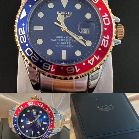 Selger en nydelig og strøken automatisk dykkerklokke fra Tandorio. Denne er vanntett til 200 meter og kan brukes til dykking. Urverket er automatisk og en glassplate bak på klokken gjør at man kan se det nydelige urveket. Original lenke. Gull både på forsiden og baksiden av lenken, noe som er veldig uvanlig.