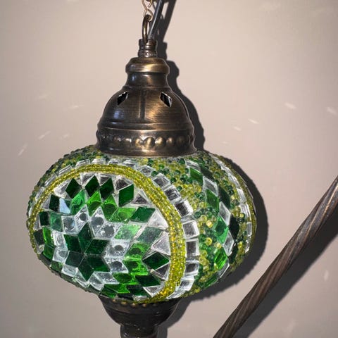 Denne originale orientalske mosaikklampen løfter virkelig rommet ditt i en fengslende grønn nyanse.