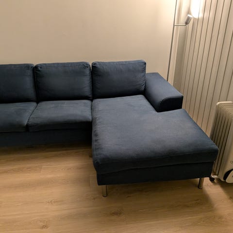 Selger en meget pen og velholdt hjørnesofa i tallmyra blå farge, fra Ikea. Sofaen ar 2 år gammel og i veldig god stand. Seksjonene i sofaen kan demonteres, og settes sammen på ulike måter.