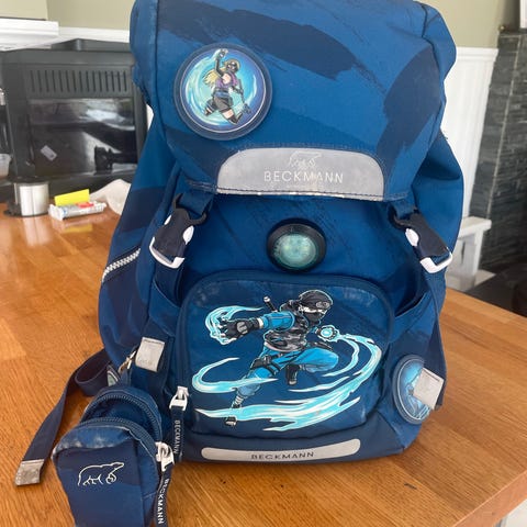 Blå skolesekk fra Tinka Cool School serien med fotballmotiv.