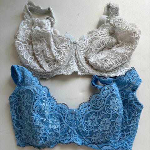 2 ubrukte, vatterte spilebh’er i str. D85, med tag’n på, selges for 80 kr pr stk, eller samlet for 140 kr. Bestilte de på nett for lenge siden, men så at de ikke passet, så de er ikke prøvd på. Selges derfor billig. Modellen heter «U Winnie Push Up», og fargene er charcoal og indigo. Røyk- og dyrefritt hjem. Hentes hos meg på Langhus, eller sendes mot porto. Har Vipps. Se gjerne mine andre annonser. Søkeord: padded * undertøy * blonder * lapp * bra * brystholder