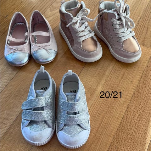 Masse fint brukt sko for jente i forskjellige størrelser fra 21 til 25.