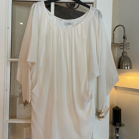 Ella Luna 100% silkekjole med dyp utringing.Kjolen er foret. Str. S. Brukt en gang på fest.Kostet 2400.- ny. Ps. Har også denne i fargen beige for salg på en av mine annonser.