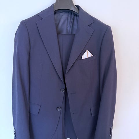 Selger denne super fine og klassiske dressen i fargen 744 blueprint. Kjøpt på Bertoni, lite brukt. Passer til høy slank ung mann.