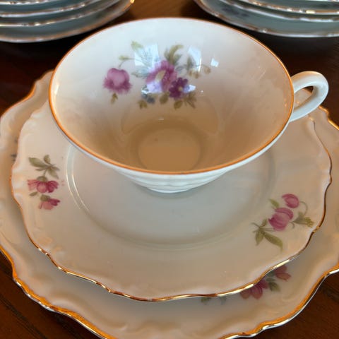 Nydelig servise med roser og gullkant