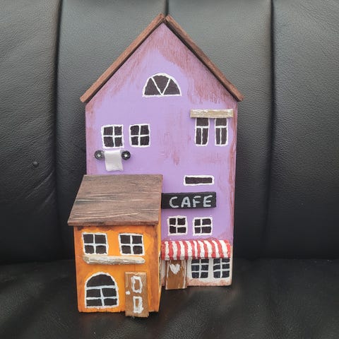 Håndlaget bordlampe. Den er laget av bare bøker, og er rosa, svart, hvit maling med sølv glitter. Den er ca 22cm bredd, 14cm dypt og ca 45cm høyde. Lampen fungerer og man kan også bytte den.