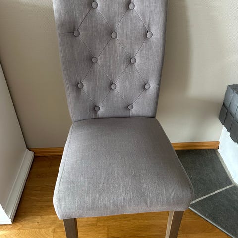 Gir bort fire godt brukte spisestuestoler kjøpt på Bohus for noen år siden. Stolene gis bort da det er flekker på trekkene (se bilder) og litt skrammer på stolbeina (se bilder).